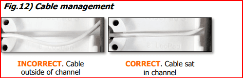 Fig.12) Now’s the time to pull excess cable though the wall or pole mount and ensure the card reader USB cable is sat in the central channel and not off to one side. If the cable isn’t sat in the channel properly, the LocPad case won’t sit flush to the card reader mount.