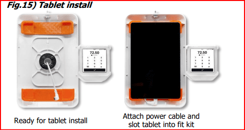 Fig.15) At this stage, the LocPad case card reader, and cabling should look like this. Connect the charging cable to the tablet and slot your tablet into the ‘fit kit’. The tablet should fit snugly in place. The tablet isn’t fully secure yet, so be careful not to let it fall out!