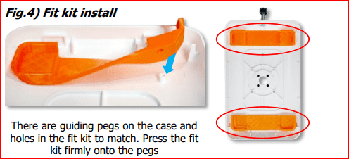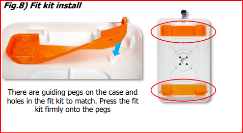 There are multiple ‘pole’ mount options available. But the basic installation is the same. Fig.8) Press the fit kit into place onto the round pegs on the LocPad rear case. Both bottom and top fit kit parts are identical.