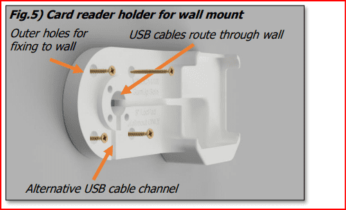 Fig 6) The wall mounted card reader mount should now look like this with the two USB-C cables in place.