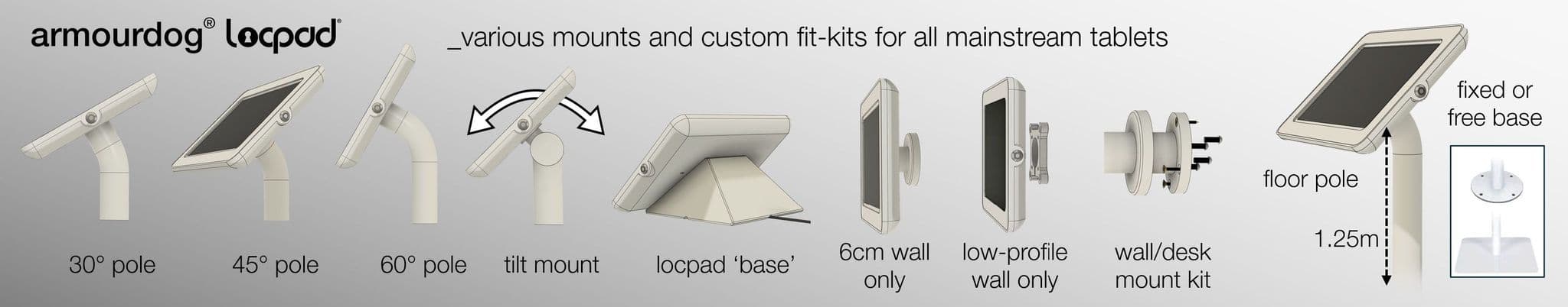 LocPad® security enclosures are designed to fit a wide range of tablet brands. You can add secure tablet stands to your business for the following names: Apple, Huawei, Lenovo, Microsoft, and Samsung. If you have another tablet you want to use, please contact us and we’ll help you get the right mount.