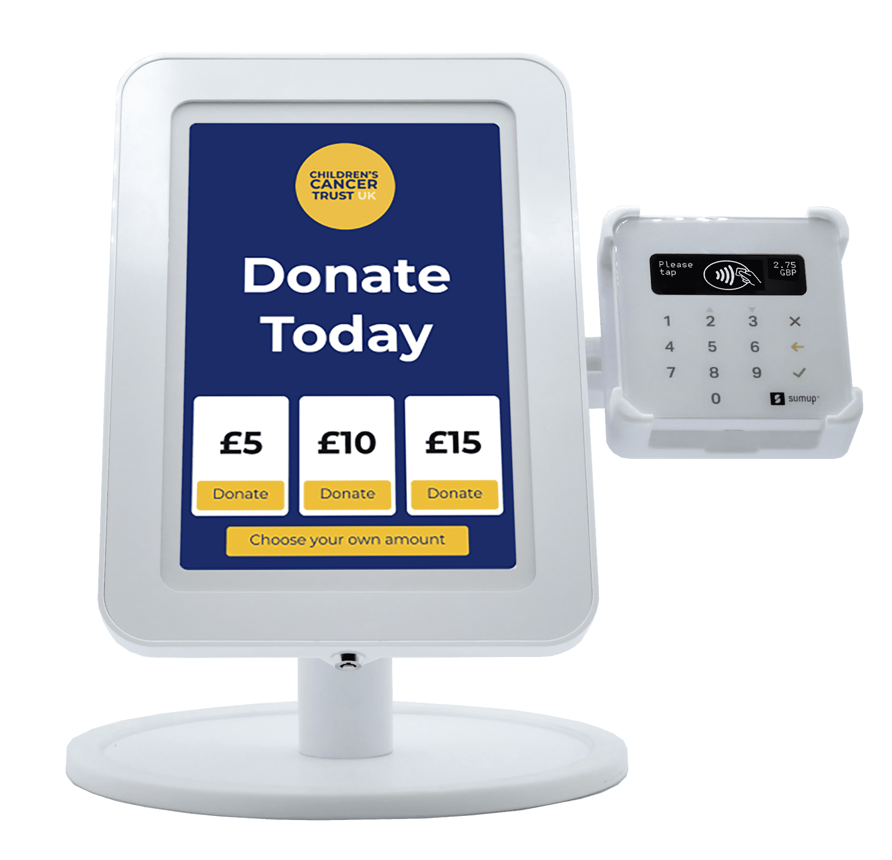 You’ll also need to purchase a card reader separately from SumUp and Stripe Wisepad 3 to get started. SumUp and Stripe card readers are compatible with our locpad® and Bosstab pay kiosks.